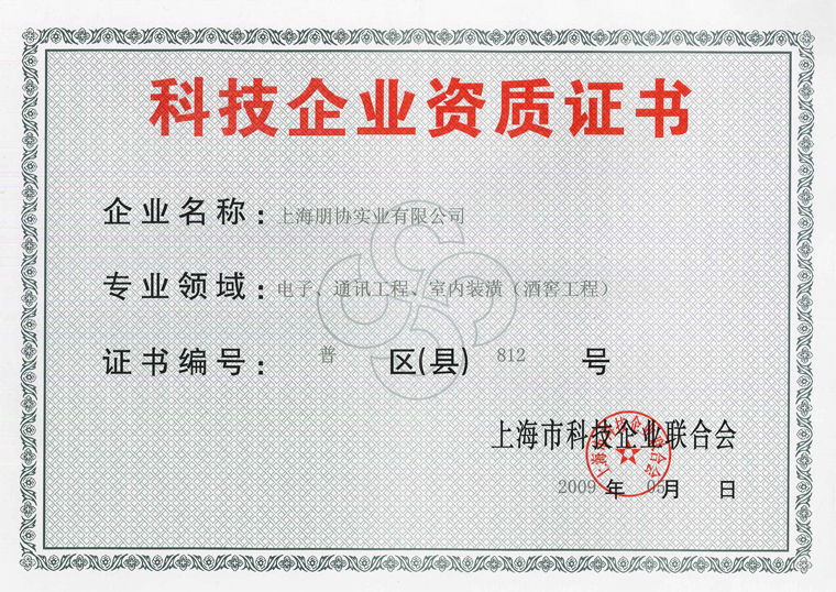 朋協科技企業資質證書(正本)